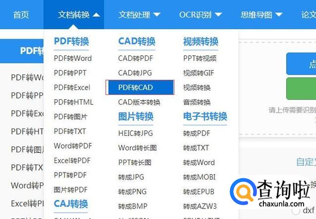 第二种是在线的,进入在线操作界面后。点击文档转换下的CAD转换并点击PDF转CAD选项。