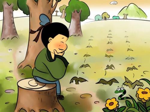 相传在宋国,有一个农民,日出而作,日落而息。遇到好年景,也不过刚刚吃饱穿暖,一遇灾荒,可就要忍饥挨饿了。他想改善生活,但他太懒,胆子又小,干什么都是又懒又怕,总想碰到送上门来的意外之财。