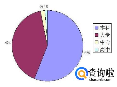 从工资对学历的要求来看,高工资的要求本科占了57%左右,要求大专的占了42%左右,中专的占了2%,高中是1%,所以这门对学历很看中。