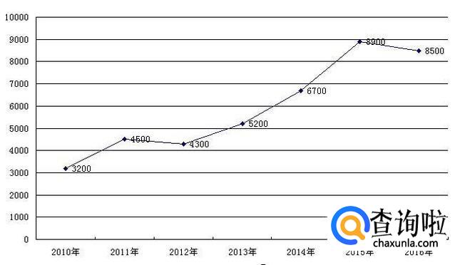 按年份来看动漫行业工资的趋势,从2010年的三千多上升到四千多,2012年降了些,接下来又开始逐步上升,2016年下降了些。未来估计在8600上下浮动。