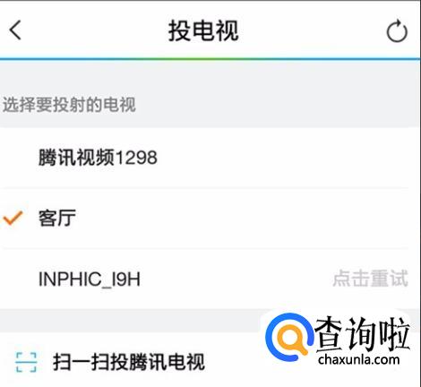 绑定后,选择要投射的电视或机顶盒,再选择视频播放