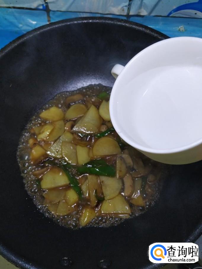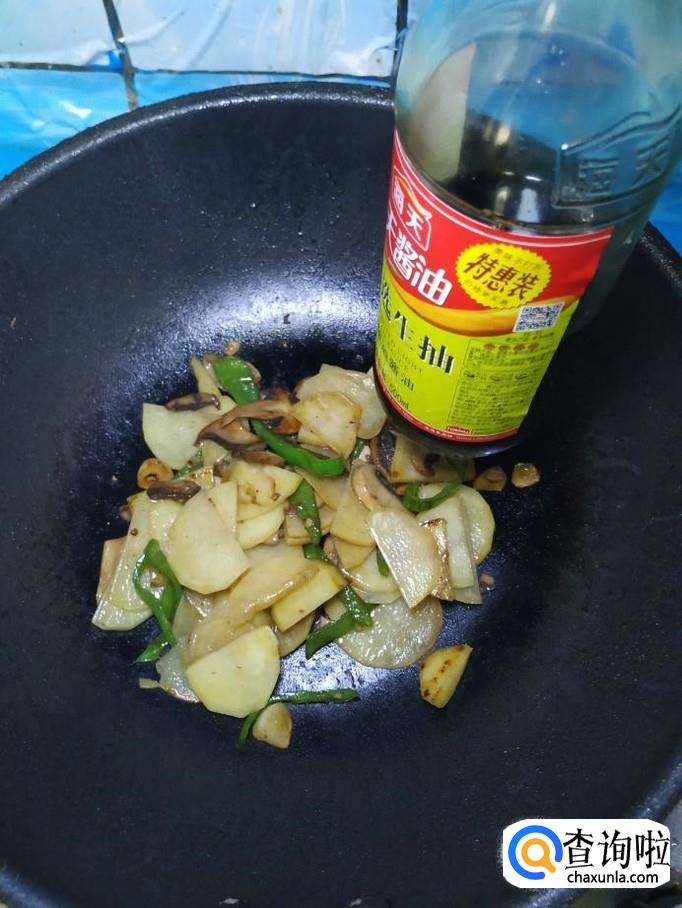 加入适量生抽,增亮色泽,再加上适量清水,盖上锅盖,焖三分钟左右,出锅前加入适量陈醋提鲜。