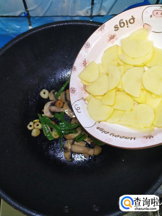 将土豆片倒入锅中,翻炒均匀。