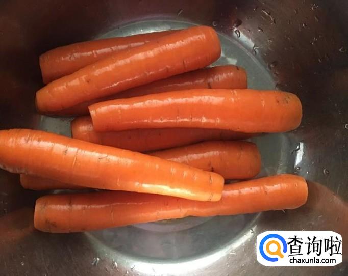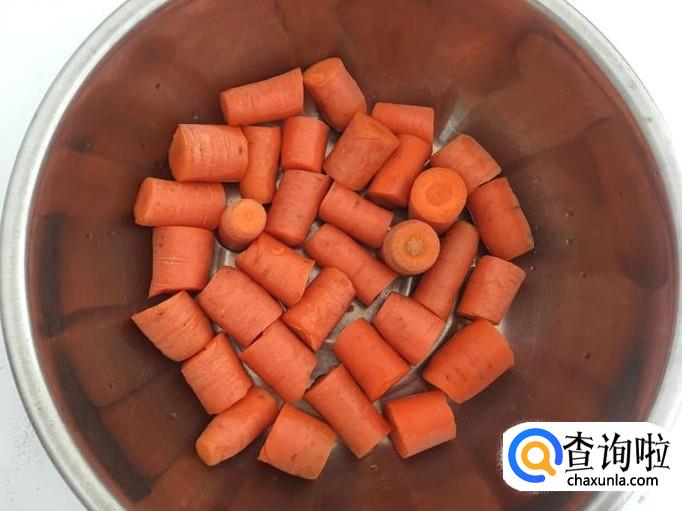 胡萝卜清水洗净后,切成小块。