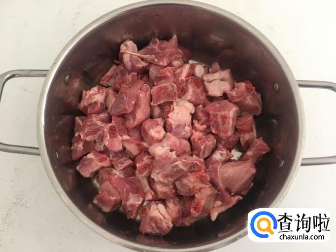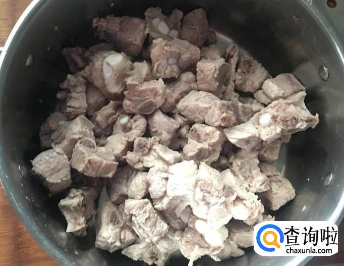 排骨清水洗净后,下冷水锅中煮出血水,再将排骨捞出清洗干净。