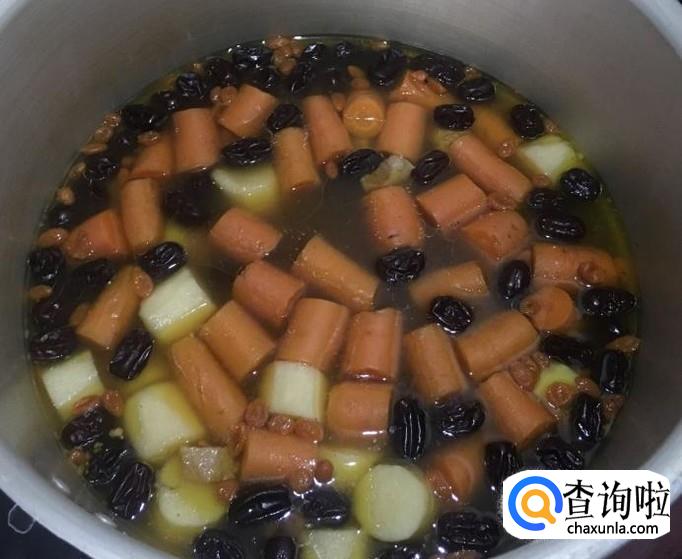 将老姜、排骨、红枣、枸杞放入高压锅中先压十五分钟。