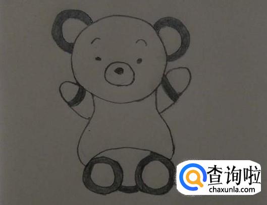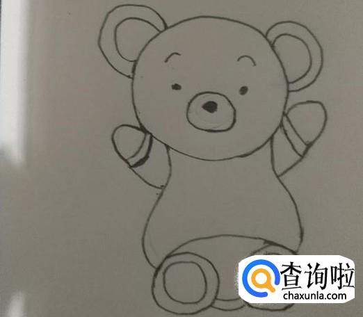 接下来我们在小熊的身体两边以及下面分别画出双手和双脚,然后把双脚给连起来,如图所示。