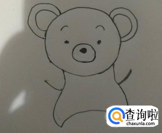 接着我们在脑袋下面画出小熊的身体,因为小熊是穿着衣服的,所以画出的身体就像一个葫芦形状,如图所示。