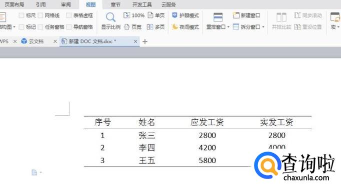 首先,打开一个空白的WPS Word文档,并任意插入一个普通表格做演示用。