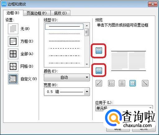 在出现的选项框中,如图所示,只选择该行的上下两条线,其余的线条都去掉,点击“确定”。