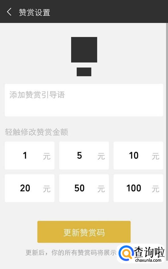 赞赏设置中可以添加赞赏引导语,赞赏的金额可以根据自己需要进行调整;