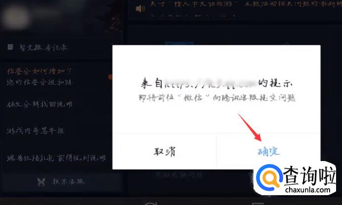这时,系统会提示“即将前往微信,向腾讯客服提交问题”,点击“确定”即可。