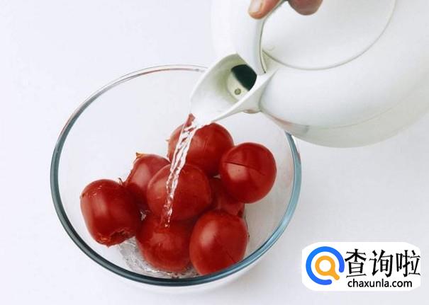 首先我们要选个头比较大、比较成熟的果实,然后用清水清洗干净,然后用热水浇在番茄上面,这样子可以方便剥皮。