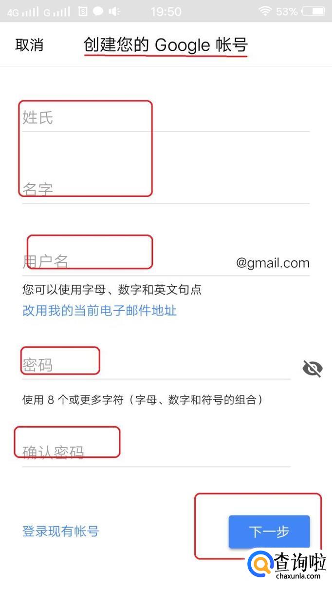 就进入申请谷歌账号页面了,如图所示,按要求填写信息,就可以成功注册一个谷歌邮箱账户,您不妨去试试哦!
