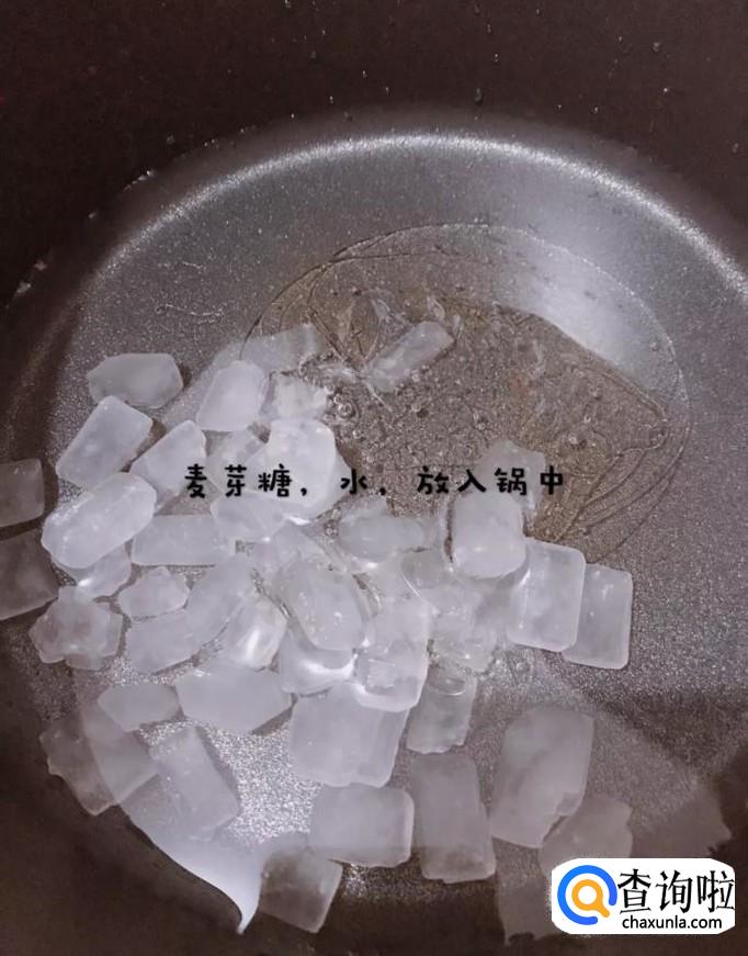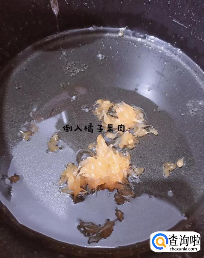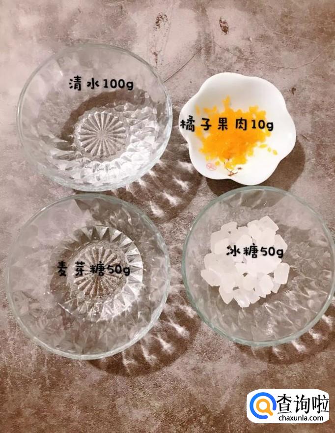 食材:清水100克,麦芽糖50克,橘子果肉10克,冰糖50克。