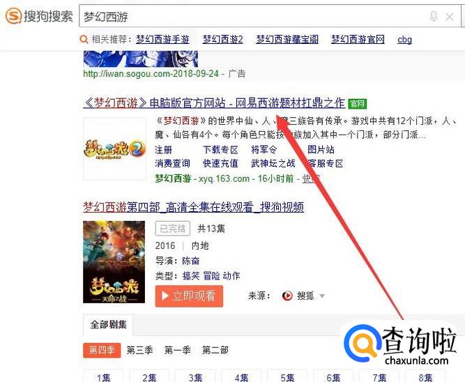 进入之后,搜索“梦幻西游”,点击官网并进入,如图所示。
