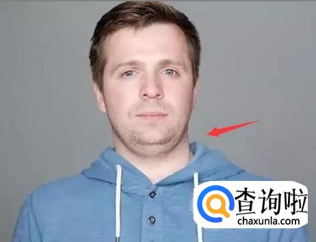 使用ps打开我们的图片可以看到在人物上有双下巴,如图所示: