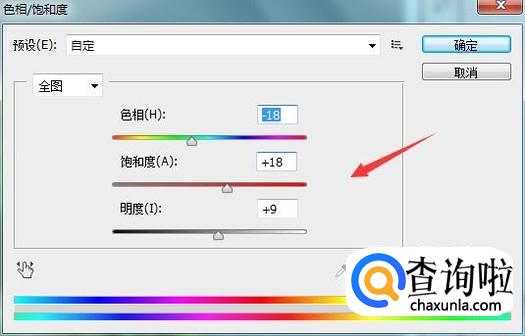 点击色相饱和度选项,在弹出的对话框内设置参数如图所示: