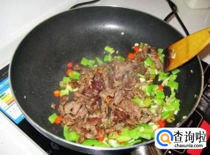 最后倒入牛肉翻炒数分钟就可以上桌。