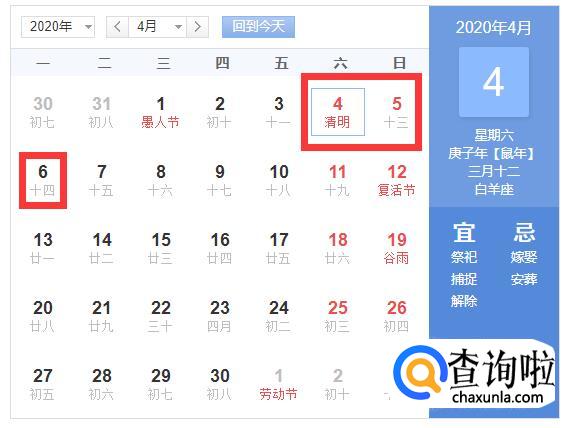 2020年清明节: