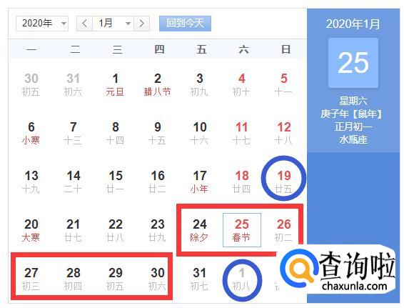 1月24日~30日,放假7天(除夕夜到年初六);