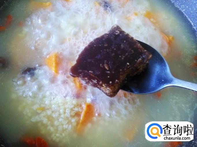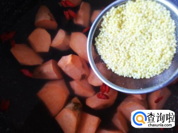 红薯150克,小米70克,黄精20克,枸杞,土红糖适量。