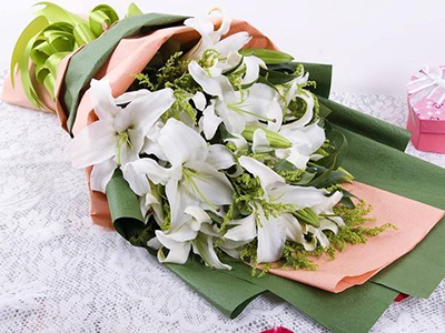 高档切花,花期长,清香悠远,花束及插花中一般作为焦点花出现,可以有效提高档次,象征纯洁、富贵、百年好合、顺利、心想事成、祝福。是婚礼上必不可少的花材。百合(白):纯洁、庄严、心心相印。
