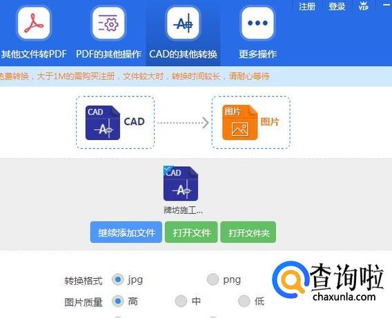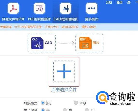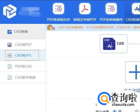 打开之后,你需要找到左边的CAD转换下的CAD转JPG选项,点击就可以啦