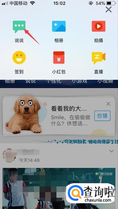 接着会出现说说、相册、视频和直播等等的功能,点击一下说说。