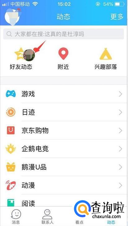 首先我们登录qq后先在动态的页面里进入到好友动态。