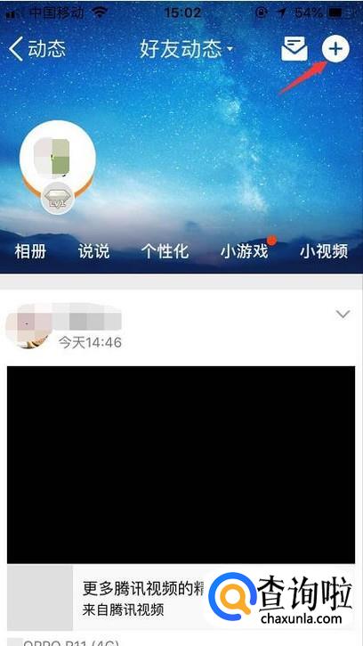 进入到好友动态后点击右上角的+图标。