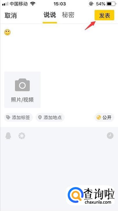 最后我们只要输入想要发表的动态然后点击右上角的发表即可完成。