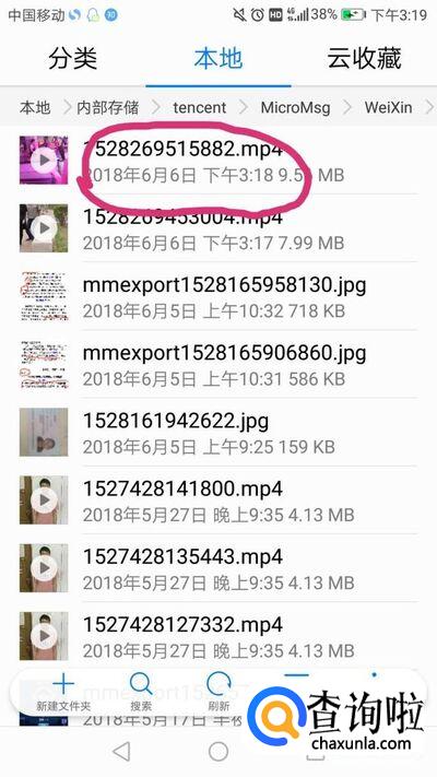 打开手机文件管理,根据上一步图中显示的路径找到该微信小视频文件夹所在的位置,如图,点开该视频可以看到就是刚刚在微信中保存的小视频。