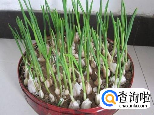 把蒜头一个个拿下来,再把有须的那头埋在泥土里面,不要太密也不要间距太宽。把整个花盆种满。