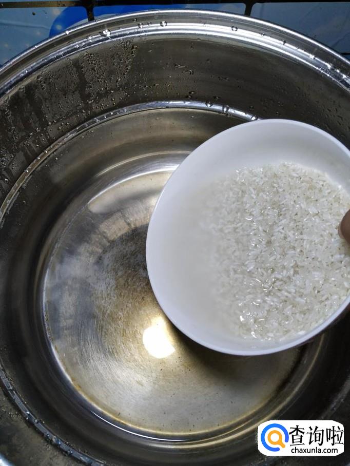 将泡好的大米倒入汤锅中,泡好的大米比较容易煮开。