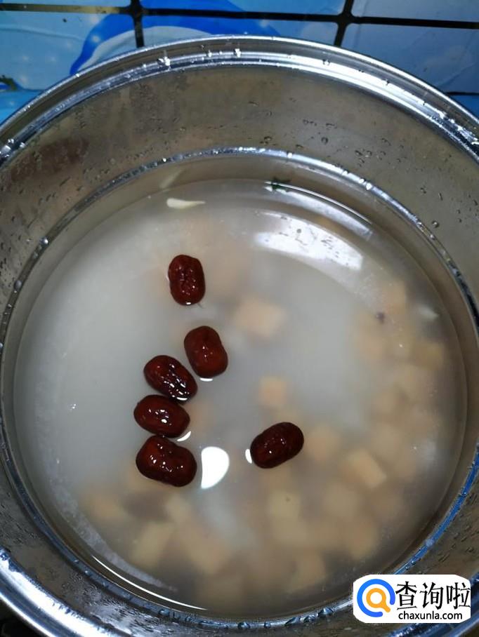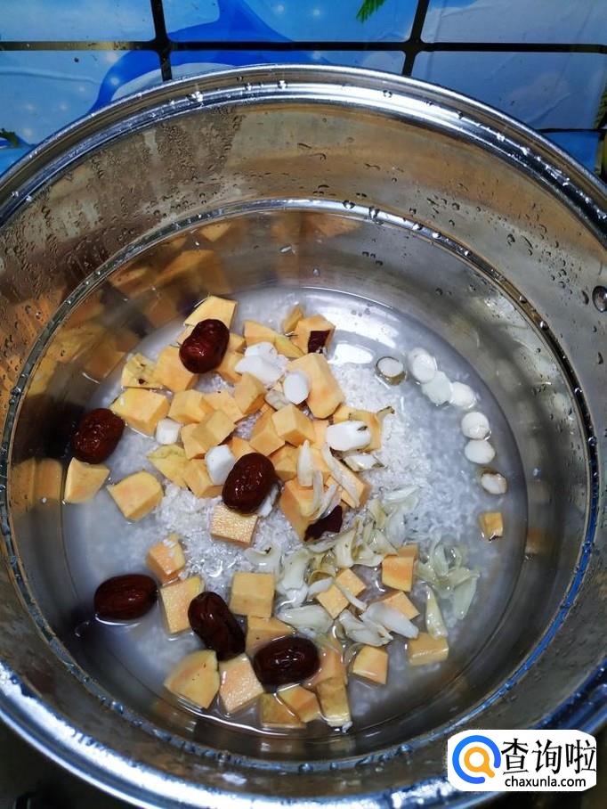 将泡好的红枣和百合也倒入锅中,百合还有润肺止咳的功效,秋冬季节来吃特别适合。