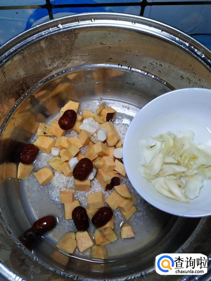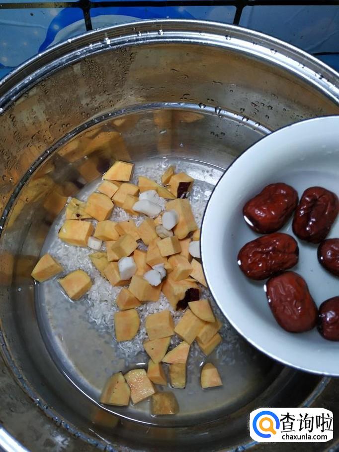 红薯适量,山药适量,百合适量,红枣适量,大米适量,蜂蜜适量。
