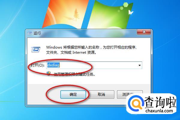 然后在输入框中输入“dxdiag”,点击下方的“确定”按钮。