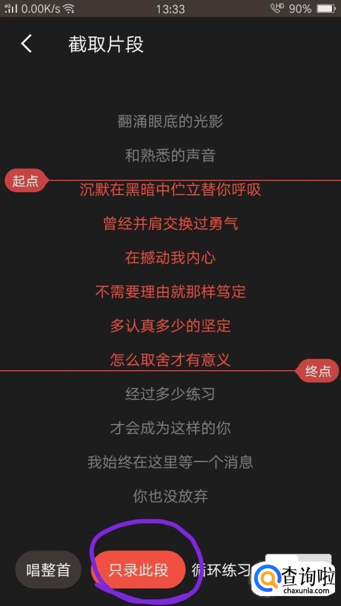 之后就可以唱自己选择的片段了。