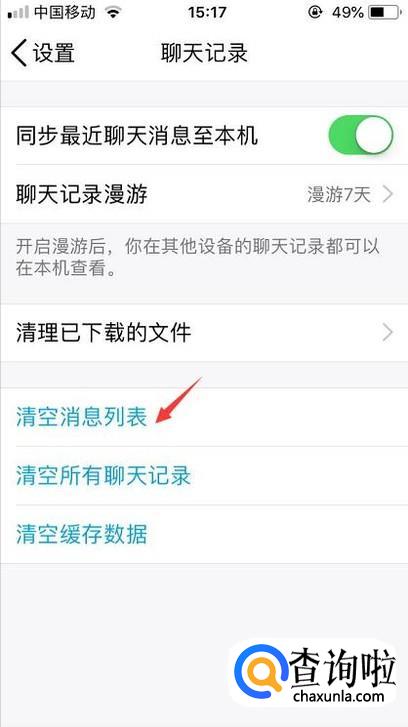 接着在聊天记录里拉至下方,点击一下清空消息列表。
