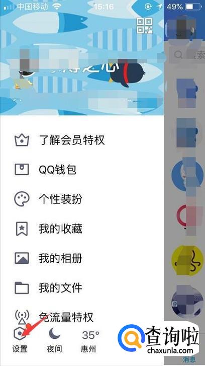 首先我们登录qq后点击左上角的头像进入到设置的功能。