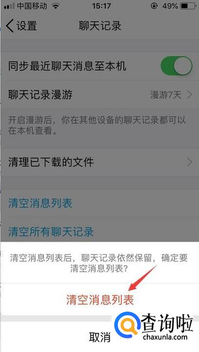 最后系统会向你确认一遍是否清空,我们再点击一遍清空消息列表即可。