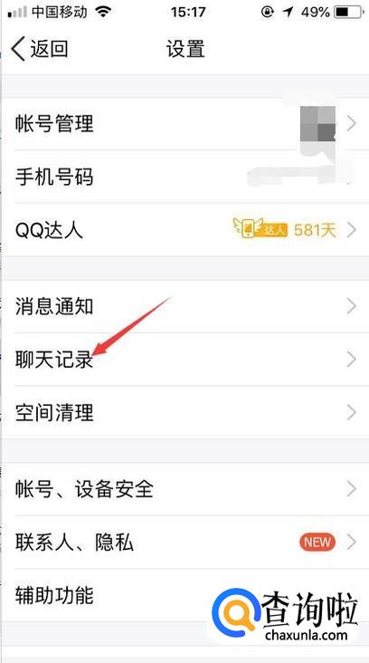 在设置的功能里面会看到消息记录的选项,点击一下。