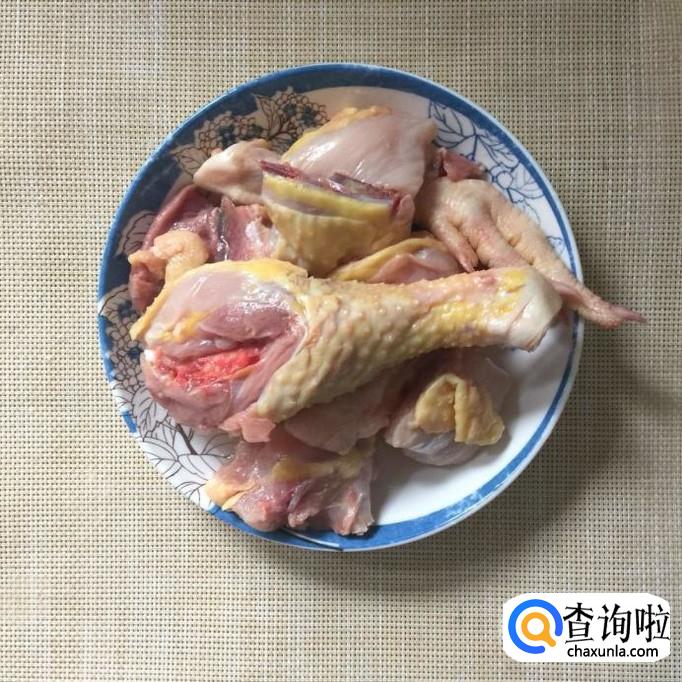 然后将鸡肉洗净切成块。注意切鸡肉的时候,要做到快准狠,这样切出来的鸡肉才会更完整。