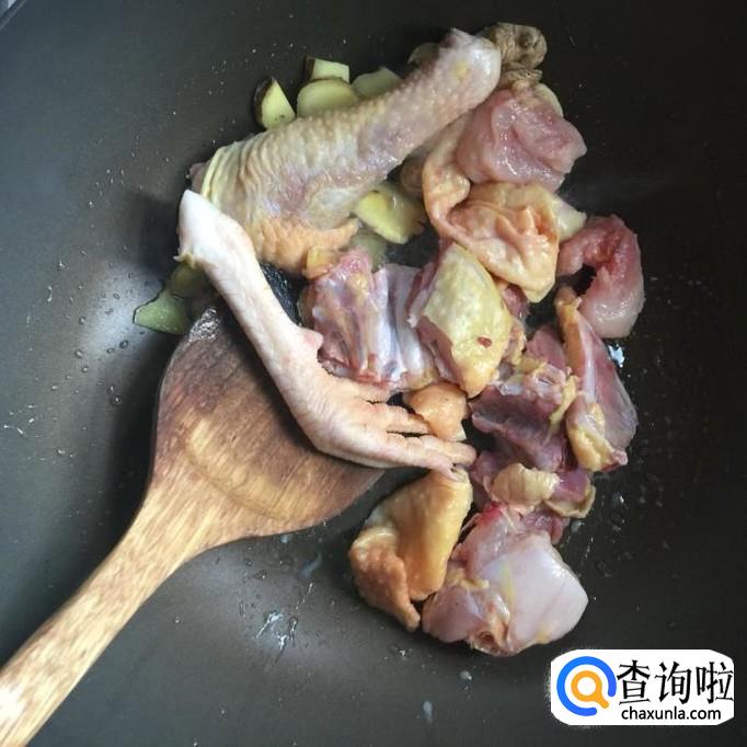 接着把鸡肉倒进锅中,翻炒五分钟。