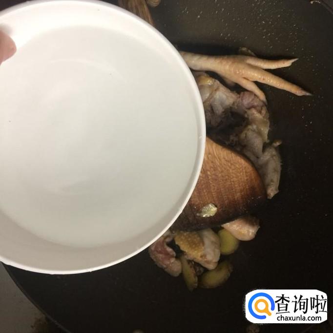 然后往锅中加入正好漫过食材的清水。