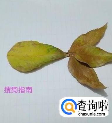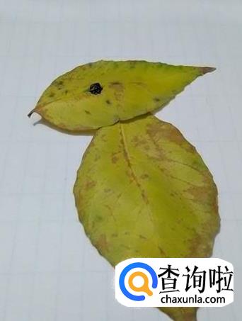 再挑三片大小差不多的叶子,粘在大叶子的右边,当作小鱼的尾巴。