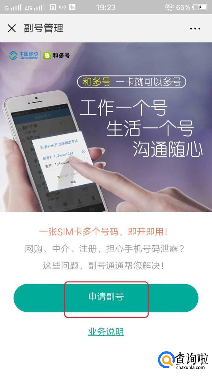 中国移动有一个“和多号”业务,可以给自己的手机号办理多个副号,工作、生活、其他业务区分开,而且只需要一张SIM卡就可以了,大家听着是不是有心动的感觉呢?下面我就来讲讲移动申请副号的方法。