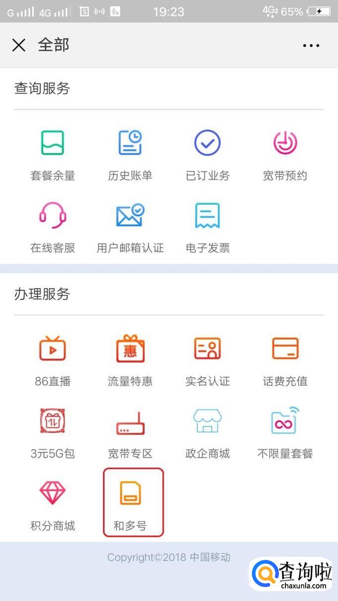进入个人主页后,我们需要寻找“和多号”业务,如图所示,点击“全部”,就可以在办理服务里面找到“和多号”。