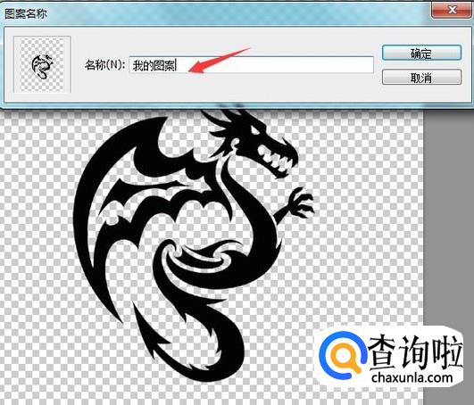 点击定义图案选项,在弹出的对话框内我们为图案命个名字,这样我们的图案就定义好了,如图所示: